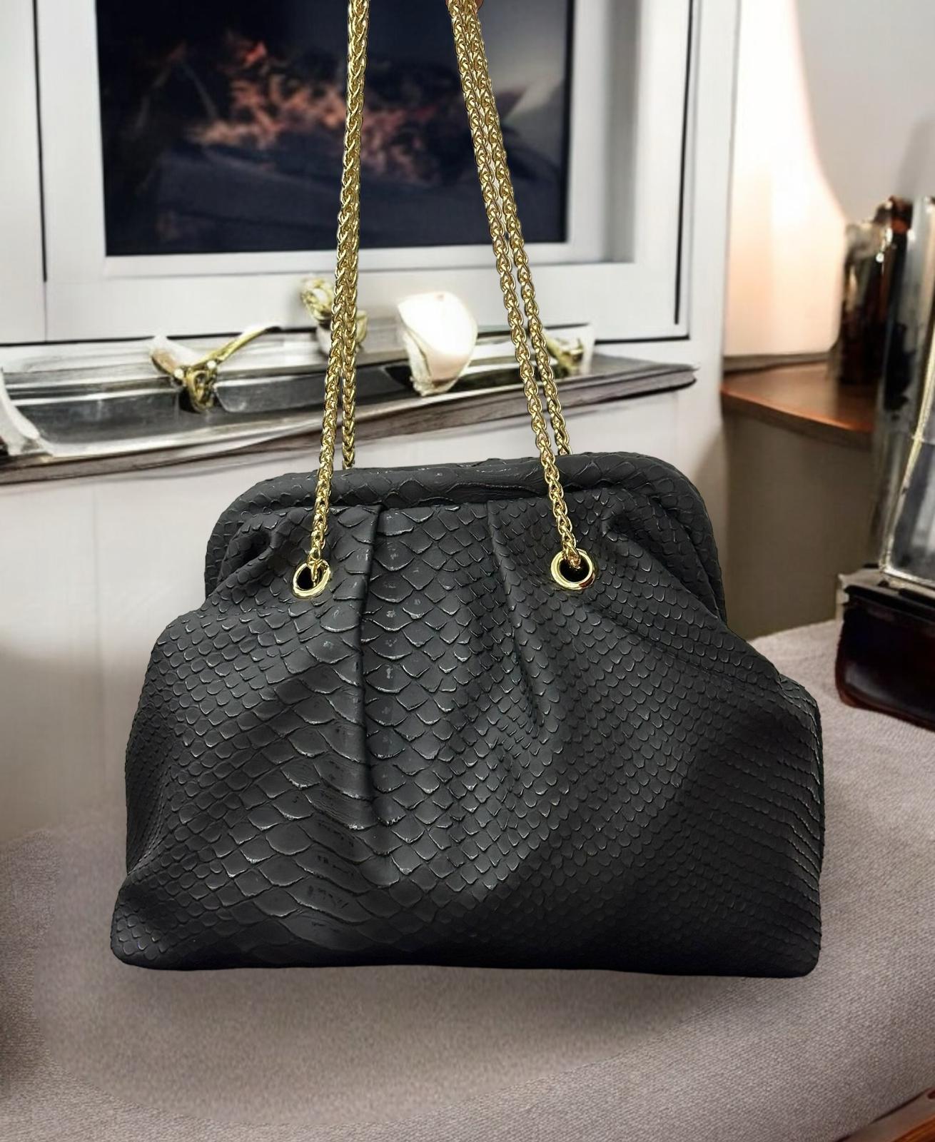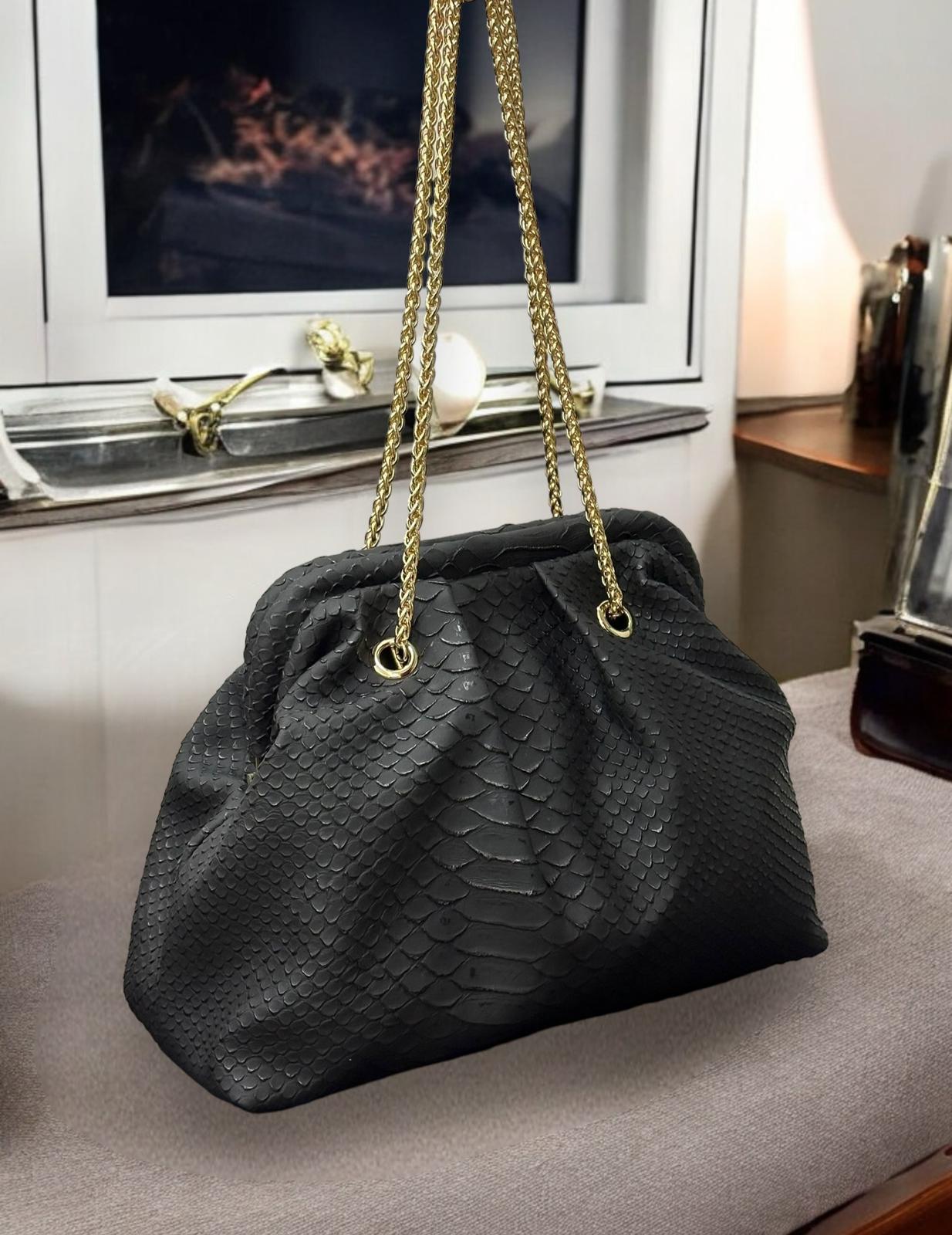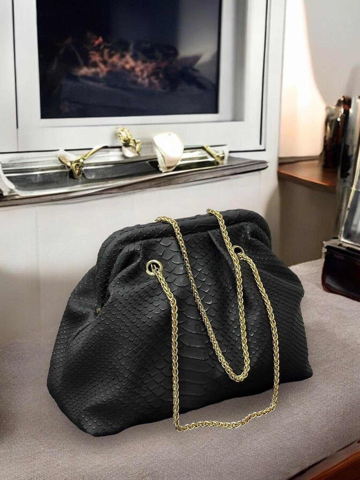Majesty North 2015 Siyah Yılan Desenli Zincir Detaylı Omuz Çantası